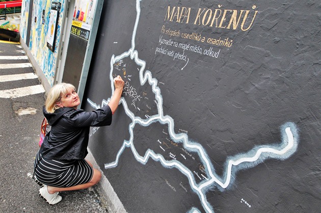 Nápad nosila v hlavě dva, možná tři roky. A to proto, že se zajímá o současnost v kontextu minulosti. Na fasádě galerie Supermarket WC vznikla mapa, do které mohou zájemci místa svých kořenů vyznačit speciálním fixem. K zapůjčení je přímo v galerii.