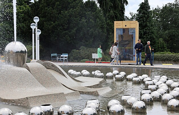 Telemost spojující Mariánské Lázně a město Ósaka v Japonsku u Zpívající fontány. Most bude obě města spojovat dva týdny. (30. července 2025)