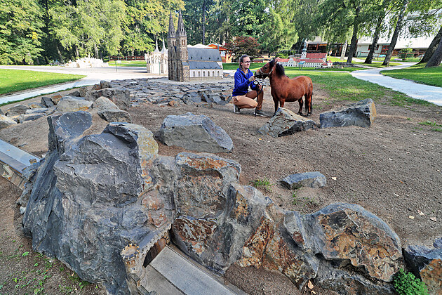 Vyšehradská sklála vznikla v parku miniatur Boheminium z čediče. Tedy ze stejné horniny, jako je její pražská předloha.