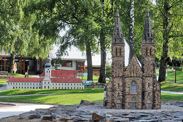 Vyšehradská sklála vznikla v parku miniatur Boheminium z čediče. Tedy ze stejné horniny, jako je její pražská předloha.