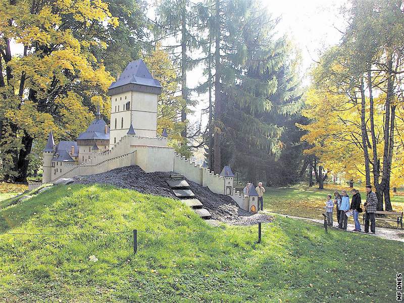 Maketa hradu Karlštejn v parku Boheminium v Mariánských Lázních