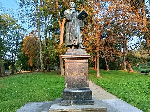 Sochu Martina Luthera, která je jednou z mála ašských památek, potřísnil vandal obtížně odstranitelnou barvou. Radnice teď řeší, jakým způsobem ji očistit. (8. října 2024)