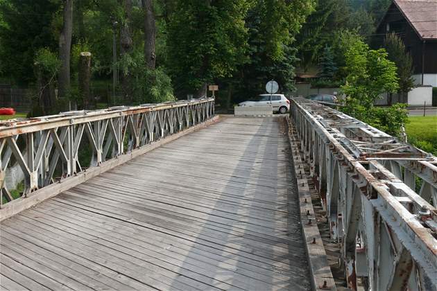 Most v Šemnici na Karlovarsku stojí na vojenské provizorní konstrukci typu Bailey Bridge pocházející z 2. světové války.