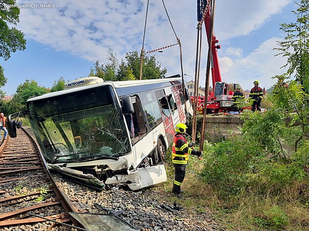V Karlových Varech začalo vyprošťování havarovaného autobusu. (19. září 2024)