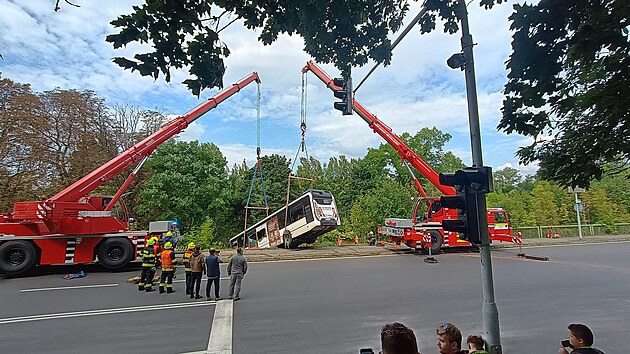 Přibližně kolem poledne zahájili drážní hasiči vyprošťování autobusu z kolejiště za pomoci dvojice jeřábů. Zpátky na silnici se jim ho podařilo dostat krátce po půl druhé odpoledne. (19. září 2024)