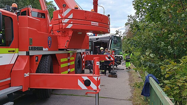 Přibližně kolem poledne zahájili drážní hasiči vyprošťování autobusu z kolejiště za pomoci dvojice jeřábů. Zpátky na silnici se jim ho podařilo dostat krátce po půl druhé odpoledne. (19. září 2024)