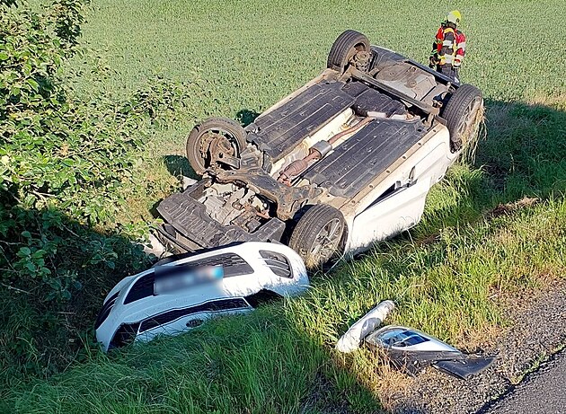 U Dolního Žandova bourala čtyři auta, dvě skončila na střeše.