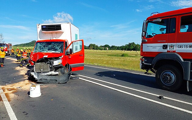 Řidič dodávky, který nehodu způsobil, utrpěl při střetu zranění. 27. června 2025