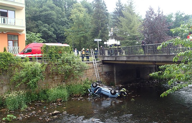 „Vozidlo vyjelo mimo vozovku, kde najelo na travnatý pás a zadní částí narazilo do zábradlí, které se zlomilo. Pak auto spadlo i s řidičkou do čtyřmetrové hloubky do řeky Teplá, kde skončilo na střeše,“ popsala událost policejní mluvčí Zuzana Týřová.