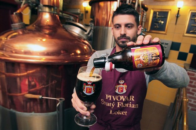 V Lokti uvařili rekordní pivo. Polotmavý speciál Václav je nejsilnější na západ od Prahy, má totiž 28 stupňů a 11,5 % alkoholu. Na snímku sládek Jakub Lojín se vzorkem piva.