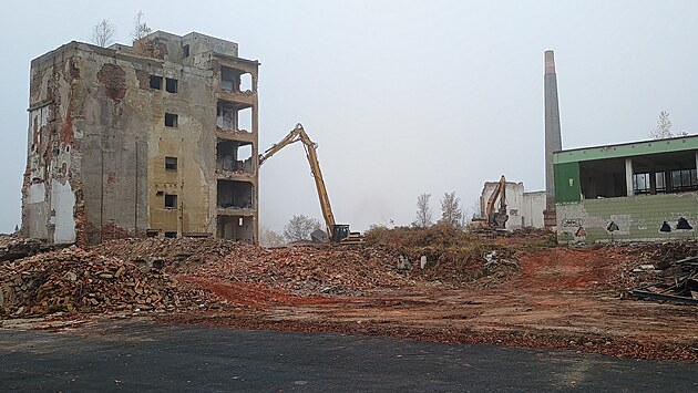 Demolice největšího objektu v areálu bývalého karlovarského pivovaru. (25. října 2024)