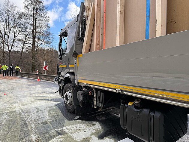 Nehoda dvou nákladních vozů mezi Stráží nad Ohří a Bočí komplikovala v pondělí dopoledne dopravu na hlavním tahu na Chomutov.