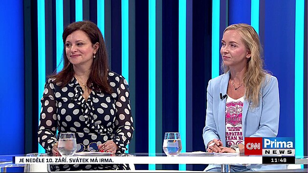 Jaroslava Pokorná Jermanová (nalevo) a Karla Maříková (napravo) v pořadu Partie od CNN Prima News. (10. září 2023)