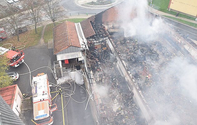 Požár Penny Marketu v Chodově na Sokolovsku (6. listopadu 2022)