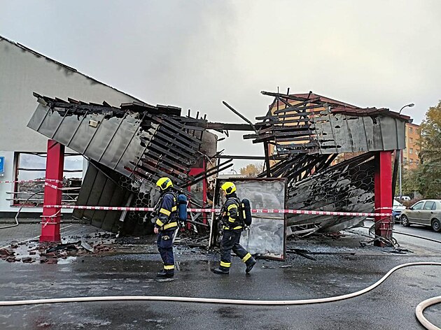 V Chodově na Sokolovsku hořel Penny Market, oheň ho celý zničil.