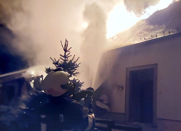 V noci z úterý na středu zasahovali hasiči u požáru statku v obci Zelená, která je součástí Skalné na Chebsku. (15. ledna 2025)
