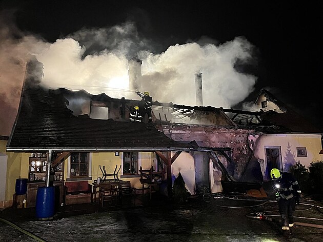 V noci z úterý na středu zasahovali hasiči u požáru statku v obci Zelená, která je součástí Skalné na Chebsku. (15. ledna 2025)