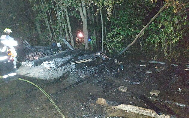 Úterní požár kotců soukromé chovné stanice ve Žluticích. Uhynulo při něm pět psů. (19. srpna 2025)