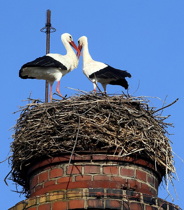 První z páru čápů přiletěl do Chebu 19. února. Nyní už je rodinka kompletní.