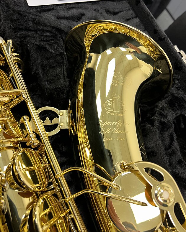 Předání saxofonu české výroby bývalému americkému prezidentovi Billu Clintonovi (11. března 2024)