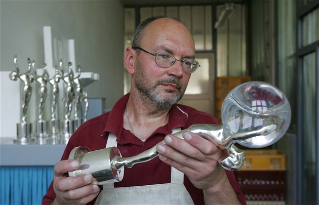 Brusič sklárny Moser Jiří Khás kompletuje křišťálové glóby pro blížící se Mezinárodní filmový festival v Karlových Varech.