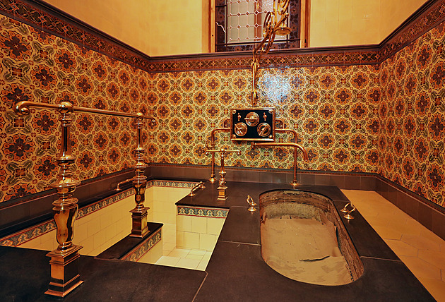 Jedním z největších lákadel prohlídek je společně se Zanderovým sálem takzvaná Císařská koupelna. „Je jedinou místností, kde je všechno původní. Mahagon, jasan, tkané brokáty. Po rekonstrukci je v podobě z roku 1895,“ konstatoval vedoucí návštěvnického provozu Miloš Bělohlávek.