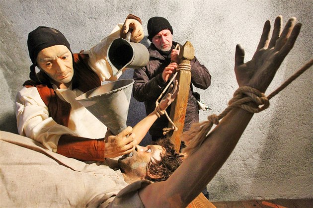 Se spolupracovníky doplnil další figuríny a rekvizity do nově upravených kobek. V jedné z nich budou mít například návštěvníci expozice možnost vidět provádění vodního mučení, dnes zvaného waterboarding. Princip mučení spočíval v přivázání vyslýchané osoby na lavici v leže na zádech a následném lití velkého množství vody trychtýřem přímo do jejích úst.