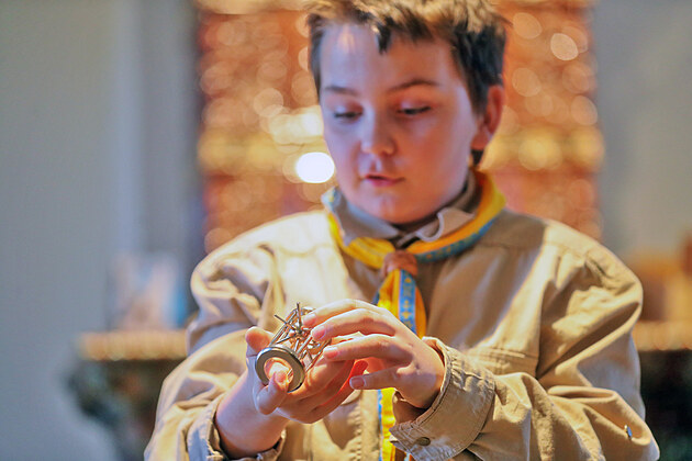Mistrovství skautů ve vyjímání ježka z klece se konalo v sále správní budovy státního zámku Valeč.