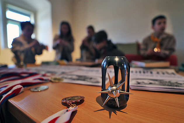 Mistrovství skautů ve vyjímání ježka z klece se konalo v sále správní budovy státního zámku Valeč.