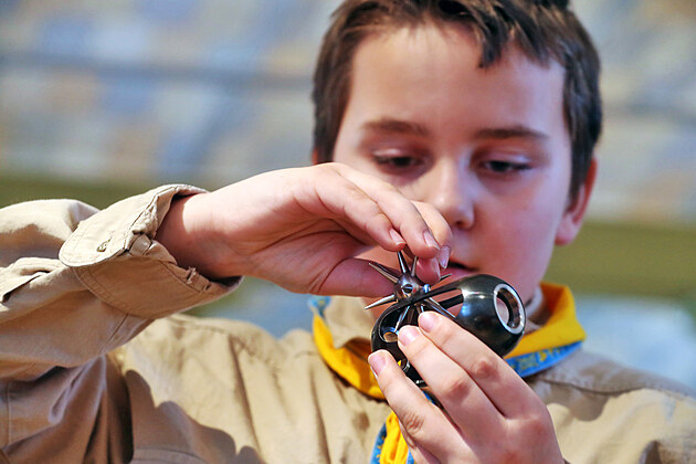 Mistrovství skautů ve vyjímání ježka z klece se konalo v sále správní budovy státního zámku Valeč.