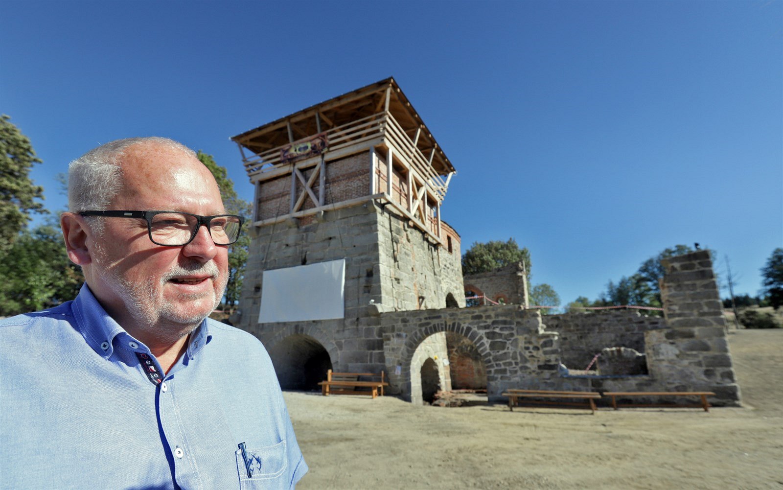 Vysoká pec s nově zbudovanou vyhlídkou v Šindelové. Na snímku Jiří Hrůza