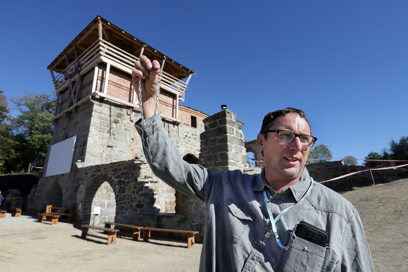 Vysoká pec s nově zbudovanou vyhlídkou v Šindelové. Klíče od ní má Rudolf Kovařík, který dovnitř pouští zájemce.