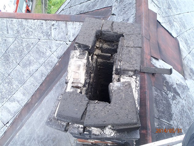 Hasiči po sobotním zemětřesení vyjeli k rozpadajícímu se komínu ve Stříbrné na Sokolovsku. (2014)