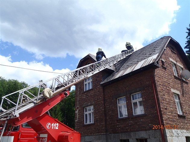 Zemětřesení poškodilo komín na domě ve Stříbrné. (2014)
