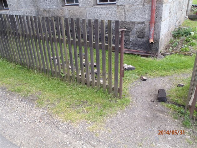 Ve Stříbrné po zemětřesení spadl komín. (31. května 2014)