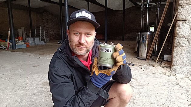 Jakub Klicpera předvádí měřicí přístroj, který bude zaznamenávat seismickou činnost. Celkem jich na severozápad Čech a v Německu rozmístí kolem tří stovek. (1. srpna 2025)