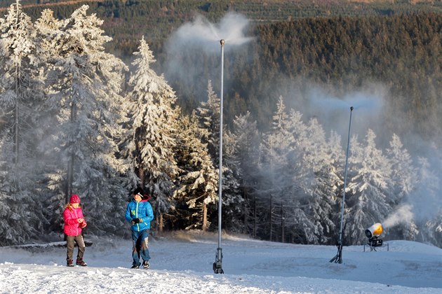 Klínovecký skiareál začal zasněžovat sjezdovky.