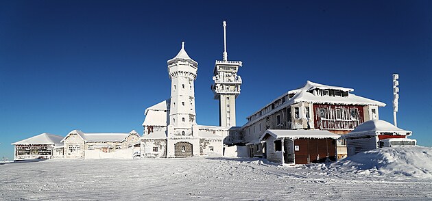 Ráno na vrcholu Klínovce po mrazivé noci (13. prosince 2022)