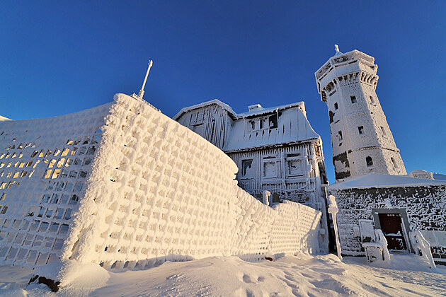 Ráno na vrcholu Klínovce po mrazivé noci (13. prosince 2022)