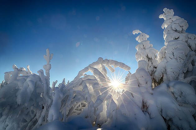 Ráno na vrcholu Klínovce po mrazivé noci (13. prosince 2022)