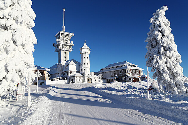 Ráno na vrcholu Klínovce po mrazivé noci (13. prosince 2022)