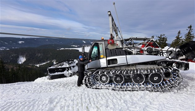 Rolba na sjezdovce Jitka v novém lyžařském středisku na krušnohorském Plešivci.