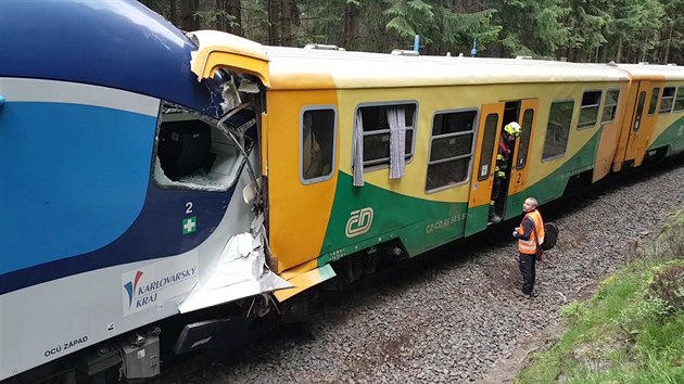V blízkosti Perninku na Karlovarsku se srazily dva osobní vlaky. (7. července 2020)