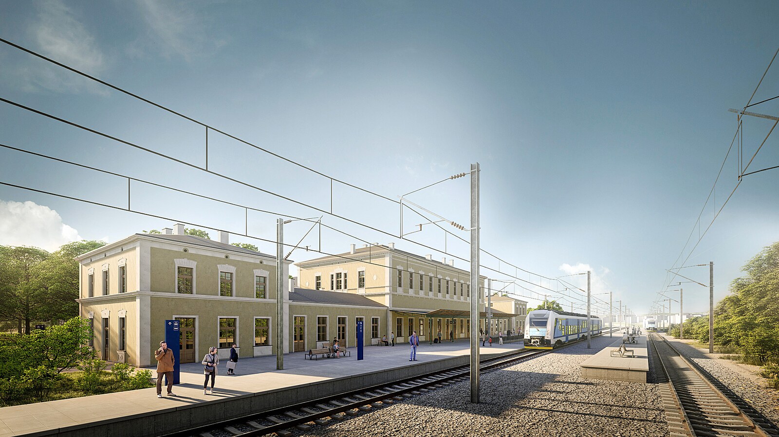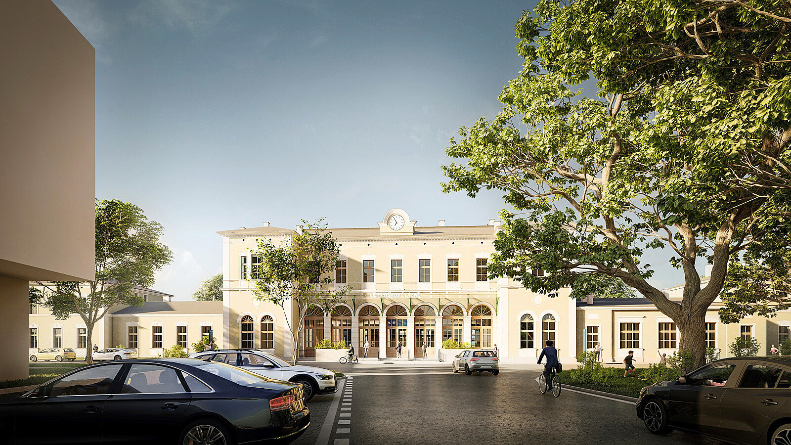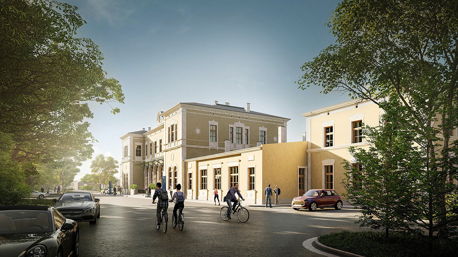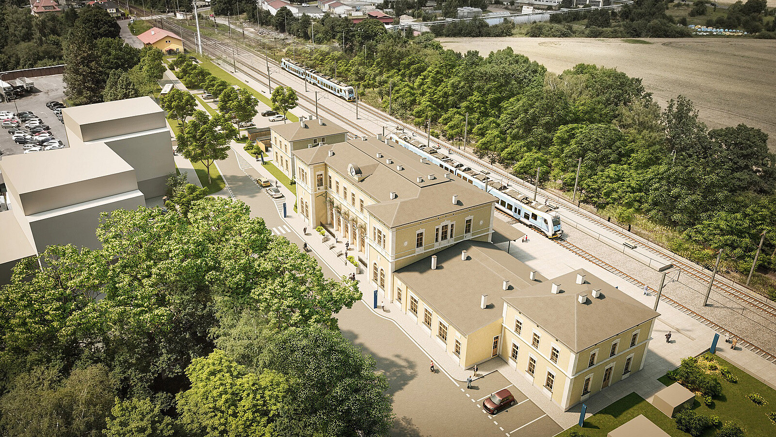 Vizualizace, rekonstrukce nádraží ve Františkových Lázních