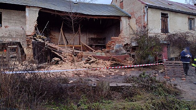 V Těšeticích se zřítila část zdi domu. Zavalená žena utrpěla středně těžká zranění, zdravotníci ji letecky transportovali do plzeňské nemocnice. (8. prosince 2025)