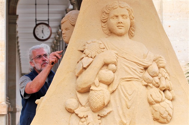 S tvorbou nového díla začal minulý pátek ráno, kdy hromadu písku upěchoval. V sobotu už se pustil po jednotlivých patrech do detailů sousoší. Nebylo to ale úplně jednoduché.