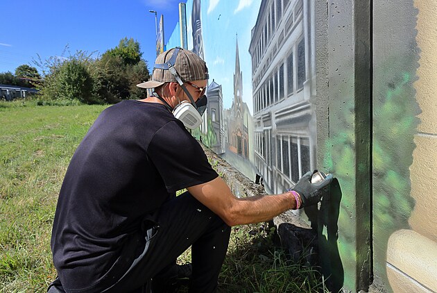 Zeď kapucínského kláštera v Sokolově mění sprejer Tomáš Popelka už třetím rokem v galerii pod širým nebem