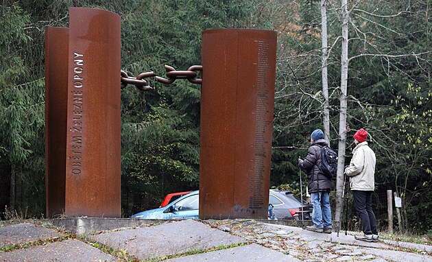 Památník obětem železné opony ve Svatém Kříži na Chebsku na česko-bavorské hranici. U příležitosti 30. výročí jejího pádu se zde setkali Češi a Němci. (16. listopadu 2019)