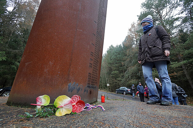 Památník obětem železné opony ve Svatém Kříži na Chebsku na česko-bavorské hranici. U příležitosti 30. výročí jejího pádu se zde setkali Češi a Němci. (16. listopadu 2019)