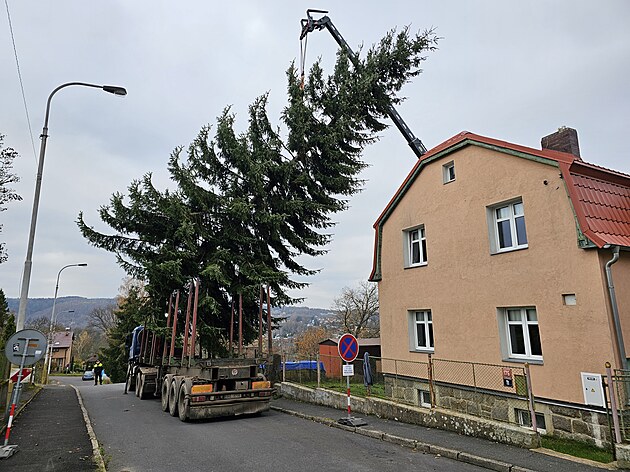 Jedle z Doubí bude symbolem Vánoc před karlovarským Thermalem. (16.11.2024)